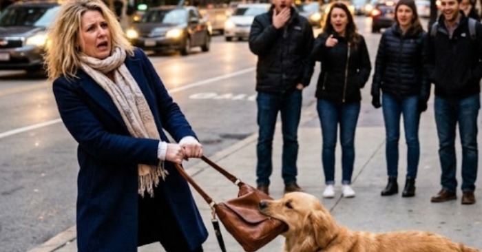 Ein Hund ergriff plötzlich die Tasche einer Frau mitten auf der Straße — und in wenigen Minuten brachen beide in Tränen aus.