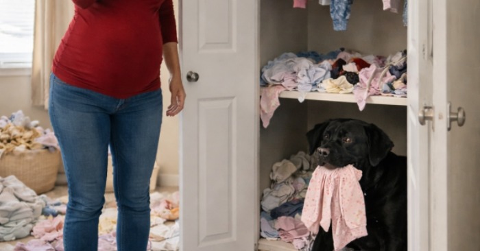 Mein Hund. Mein Partner. Derjenige, der immer an der Tür gewartet hatte, der neben mir lag, wenn alles schwer war. Aber jetzt… war er anders. Aufgestelltes Fell, schweres Atmen, ein Stück Babykleidung in seinem Maul. Er bellte nicht, griff nicht an — er stand einfach da… und sah.